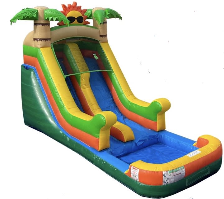 This 13' beach themed waterslide is fast and fun! Great for kids 10 and under but suitable for kids of all ages! Renter is responsible for supplying the water source and a water hose of at least 25 feet in length.