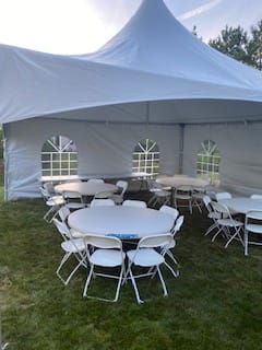 Please be advised that tents are set up a day or two in advance of the event and removed a day or two after unless otherwise agreed upon. We will notify you of set up date/time 5 days prior and confirm any changes at that time. If you require special set up times, please contact our office.